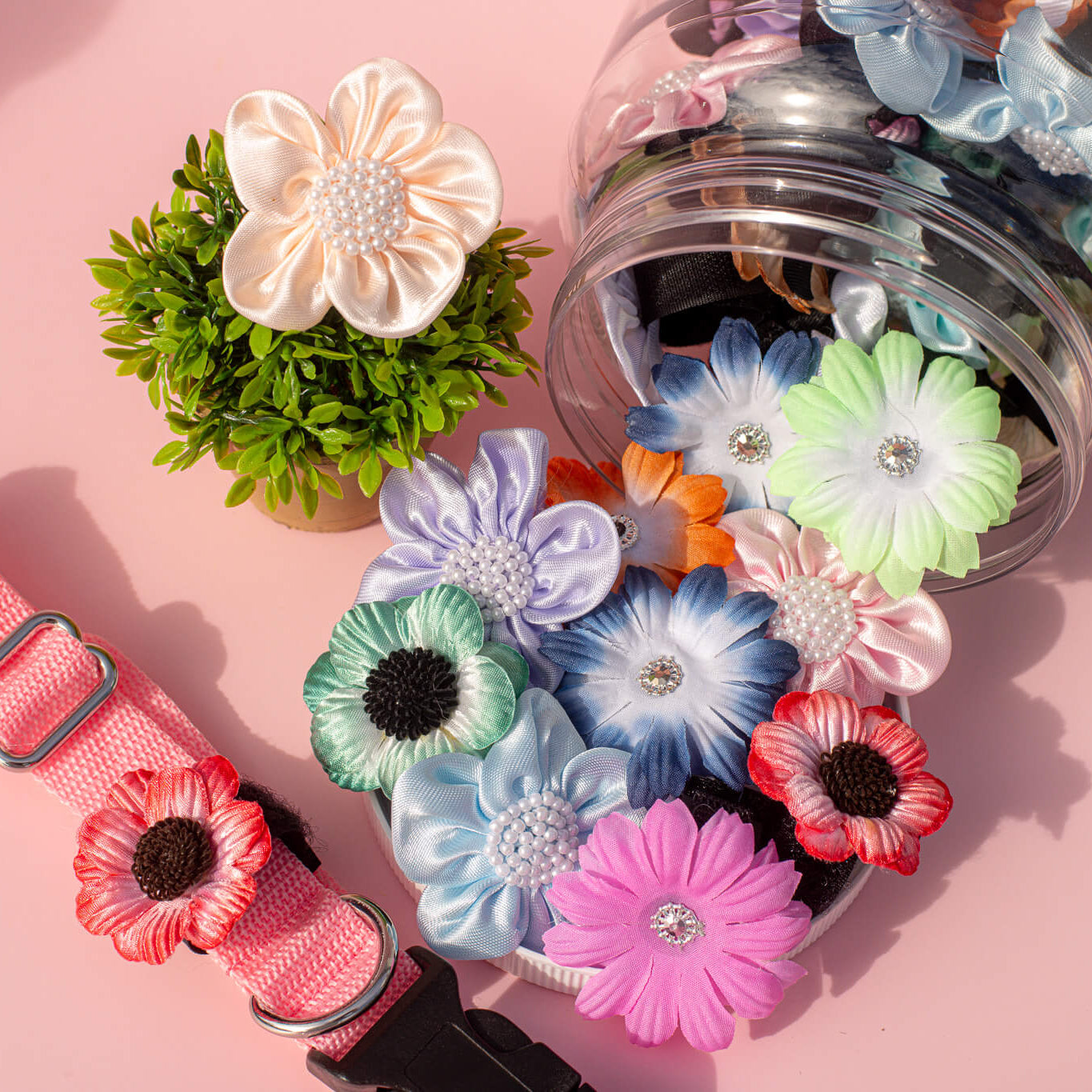 Each flower bow features an adjustable Velcro backing, making it easy to attach to a variety of collar sizes—no clips, no hassle.