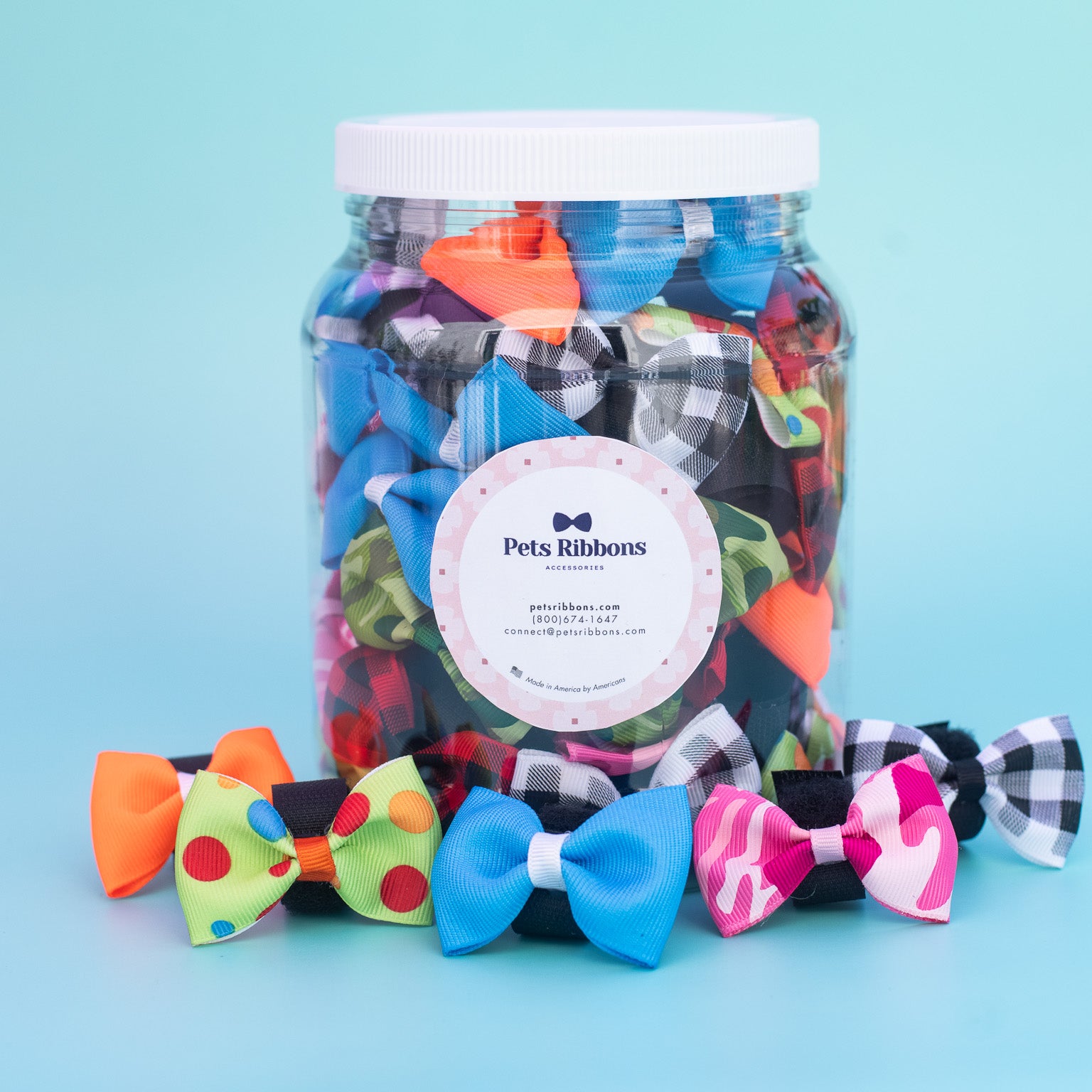 Pets Ribbons offers high-quality, wholesale pet accessories designed to give every groom a picture-perfect finish. A bow adds charm, creates a memorable experience for pet parents, and helps your services stand out. With our Bow Bundles (25 count) & Groomer Jars (50 or 100 count), there’s a fit for every grooming style—and you can mix and match designs to keep things fresh and fun.